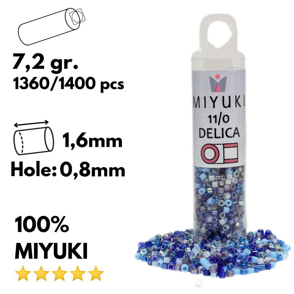 The tube of Miyuki Delica 11/0 "Caribbean Blue Mix" (DB-MIX11) contains 7.2 grams of a vibrant mix reminiscent of the crystal clear waters of the Caribbean. These beads offer an explosion of blue tones, ideal for your jewelry projects.
