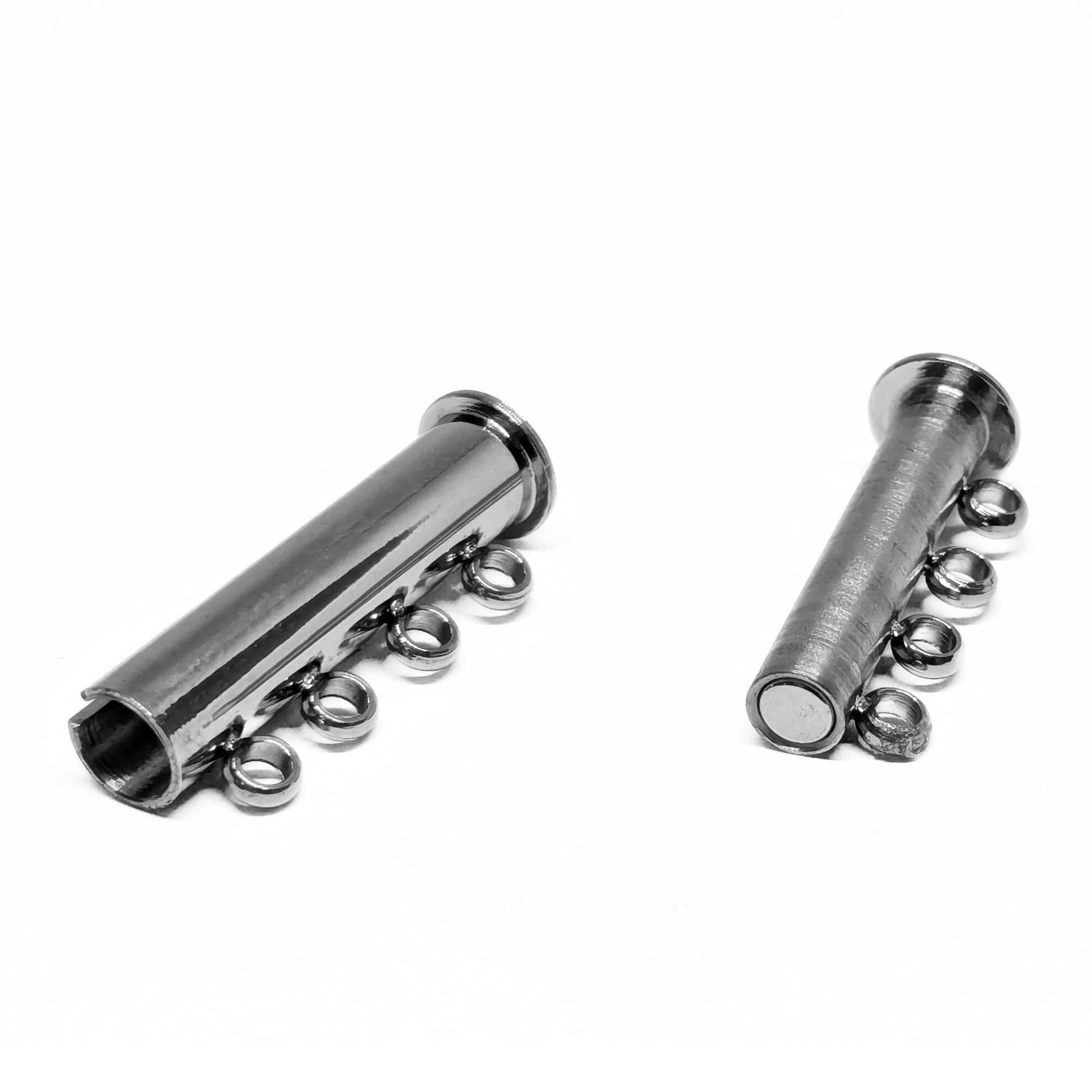 Cierre tubular de acero inoxidable 201 resistente al deslustre, diseñado para proyectos de joyería multihilos. Su sistema magnético proporciona un cierre seguro y fácil de usar.