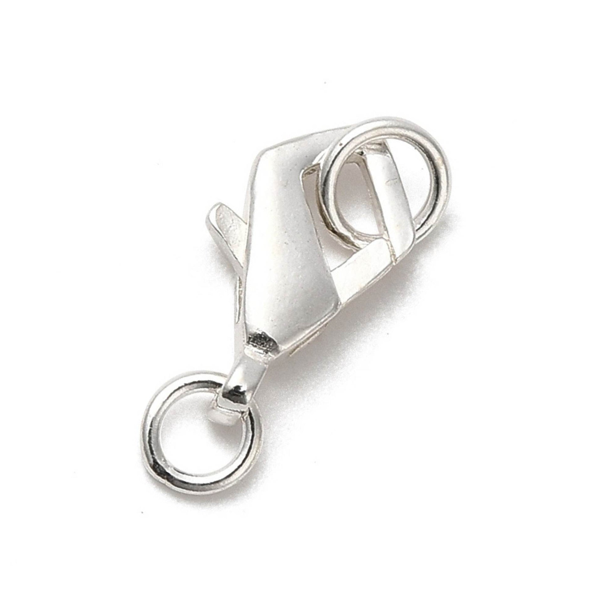 Cierre tipo mosquetón fabricado en plata de ley 925, ideal para pulseras, collares y todo tipo de creaciones de joyería artesanal. Incluye anillas de unión y lleva sello 925, garantizando la autenticidad y calidad del material. Su diseño clásico tipo lobster claw ofrece un cierre seguro, resistente y fácil de manipular.