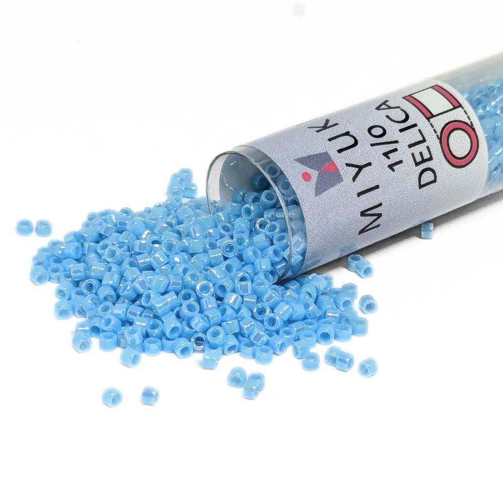 Las cuentas Miyuki Delica 11/0 en el color "Opaque Turquoise AB" son una joya imprescindible para cualquier creador de bisutería. Estas pequeñas maravillas, de origen japonés, son reconocidas mundialmente por su alta calidad, precisión y consistencia en tamaño y forma. Con un diámetro de 1,6 mm y un agujero de 0,8 mm, estas cuentas cilíndricas son perfectas para proyectos de bordado, tejido y diseños detallados.