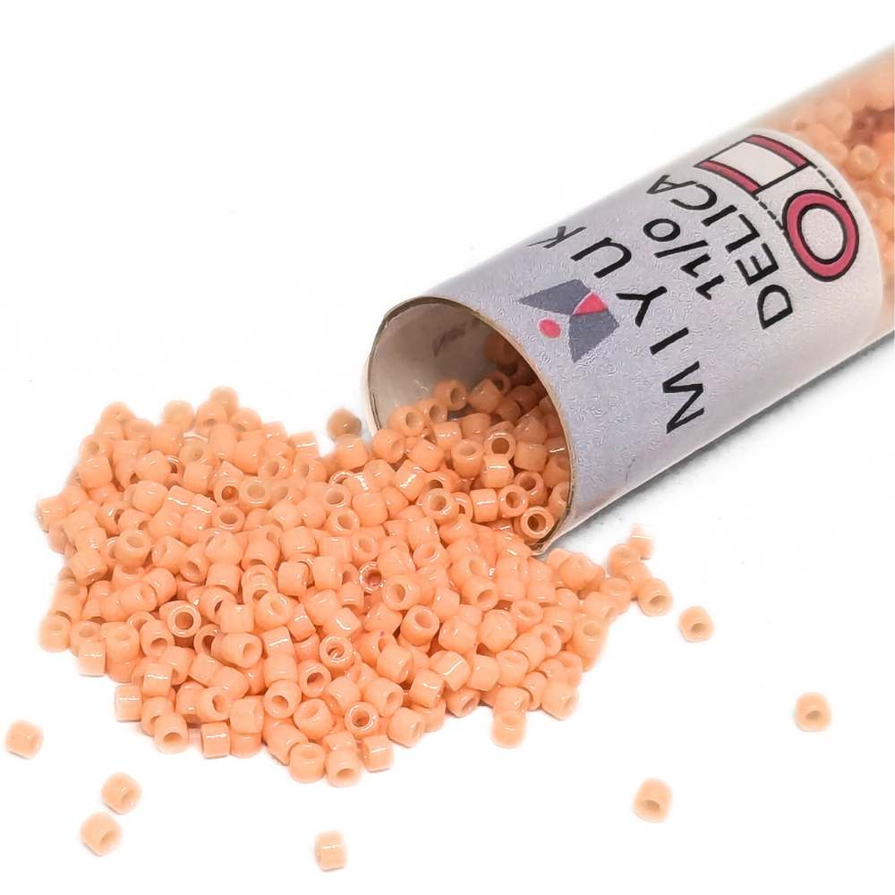 Las Miyuki Delica DB2111 en color Duracoat Opaque Tea Rose ofrecen un suave y romántico tono rosa que añade un toque delicado a tus creaciones. Cada tubo de 7,2 gramos contiene aproximadamente 1.400 piezas, con un tamaño de 1,6 mm y un agujero de 0,8 mm. El acabado Duracoat asegura un color vibrante y duradero.