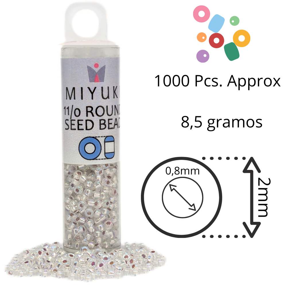 Compra rocallas Miyuki en color "Silver Lined Crystal AB" y añade un toque de lujo a tus proyectos. Nuestra tienda rocalla Miyuki tiene este y otros tonos con stock listo para envío inmediato.