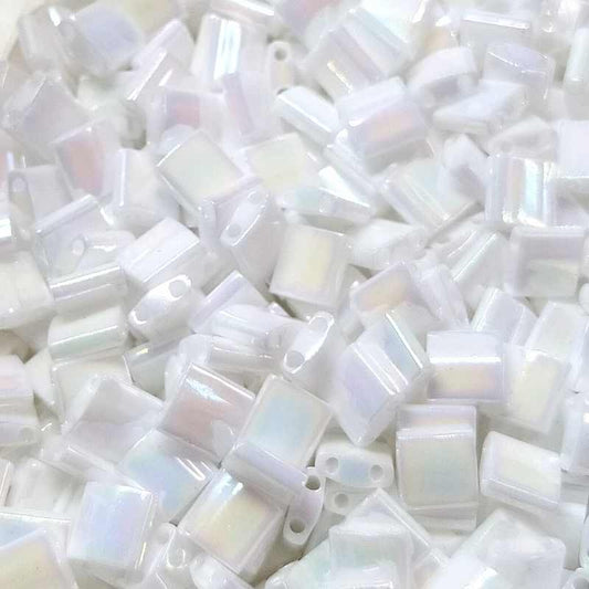 Se procura precisão e estilo, as Miyuki Tila (Full-Tila) são exatamente o que precisa. Estas contas quadradas de 5 x 5 mm com dois buracos são perfeitas para criar padrões sofisticados e modernos. O melhor é que estão disponíveis a granel desde 2 gramas, para que compre apenas o que precisa sem complicações.